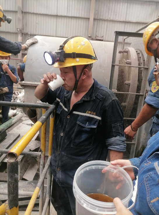 7月17日15時(shí),西昌市氣溫已升至35 ℃。在生產(chǎn)區(qū)球磨機(jī)檢修平臺(tái),機(jī)器轟鳴、焊花四濺。西昌藍(lán)鼎環(huán)保人力行政部李小方提著保溫桶,沿著滾燙的鋼梯來(lái)到作業(yè)點(diǎn),為正在揮汗檢修的員工送上剛從冰柜取出的“定制涼茶”。